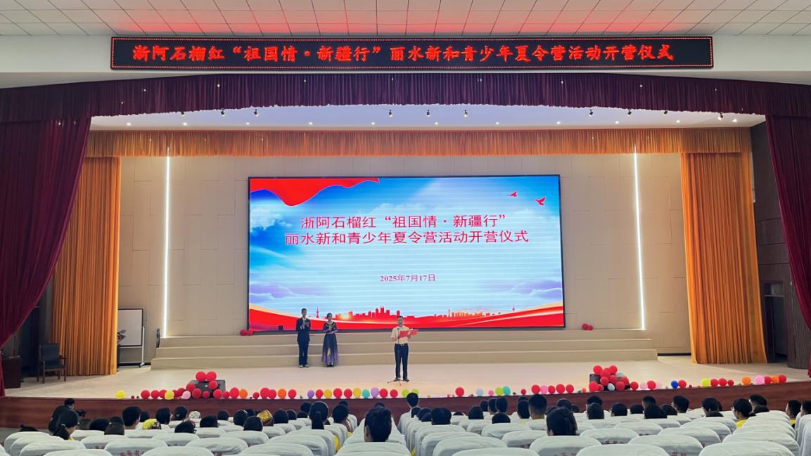 7月17日,浙阿石榴红“祖国情·新疆行”丽水新和青少年夏令营活动开营仪式在新和县丽水小学举行。此次夏令营活动将通过结对交流、研学实践等形式,进一步促进丽新两地青少年广泛交往、全面交流、深度交融,深入推进浙阿百校十万“石榴籽”青少年融情工程,铸牢中华民族共同体意识。
