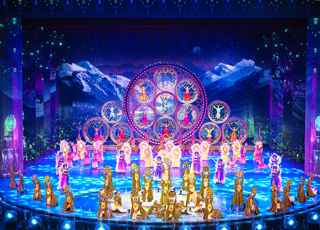 赛里木湖以自然风光吸引游客,文化科技体验方面的产品存在空白。由集团所属西域旅游开发股份有限公司推出的《遇见赛湖》沉浸式超感体验中心,以“斗转星移,雪域飞舟”为核心理念,巧妙融合当地蒙古包的传统形制与现代科技,为游客提供“人在景中、景在戏中”的深度体验。体验中心建筑外观借鉴游牧民族帐篷的流动线条,内部则通过LED透声屏技术、多声道全景声系统等,打造“星空剧场”与“雪域秘境”两大主题空间,以“生态+文化+科技”的创新模式,推动自然观光向人文体验的转型升级。