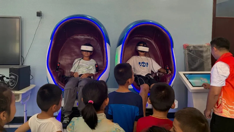 科创设备体验区里,学生们兴致盎然地探索着科普装置。VR体验区更是排起长队,戴上眼镜的瞬间,孩子们便“置身”空间站,在虚拟场景中体验太空行走,触摸悬浮的卫星模型。“我刚才看到了天宫空间站的太阳能板,太震撼了!”摘下VR眼镜的学生赵梓苏迫不及待地向同伴分享所见所感。