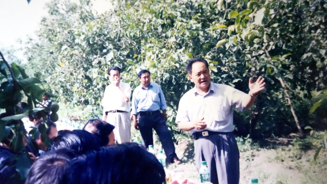 21世纪初,田宝远给果农教授核桃管理技术(田宝远 提供)