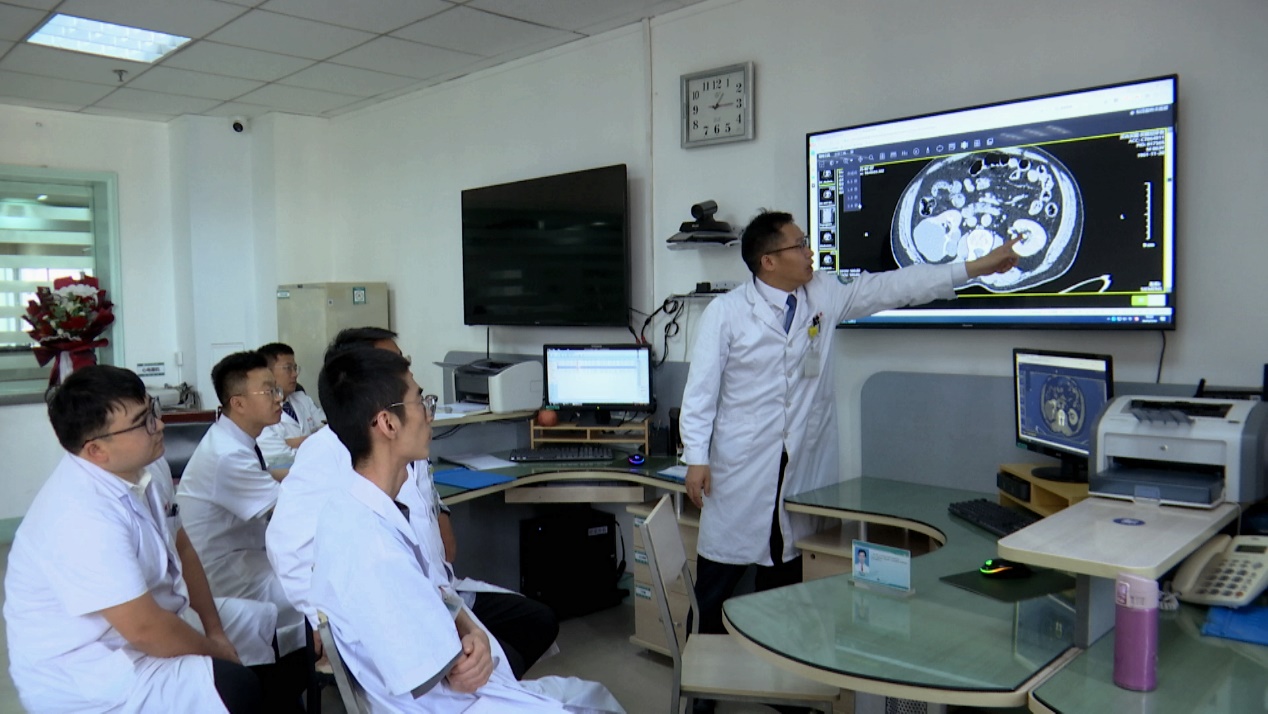 第一师医院泌尿科主任马大东带着科室医生和跟班学习医生分析手术案例。周玲玲摄