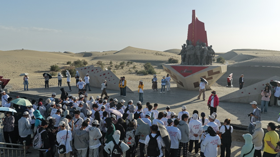 台州学子在沙漠之门景区三五九旅开发建设塔里木党性教育体验地参观学习。施亚军摄