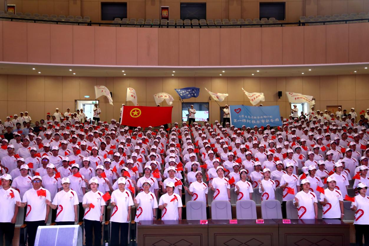 7月31日,2025-2026年度新疆兵团第一师阿拉尔市大学生志愿服务西部计划出征仪式在塔里木职业技术学院举行,来自全国各地的435名新招募西部计划志愿者将开启服务西部的崭新篇章。