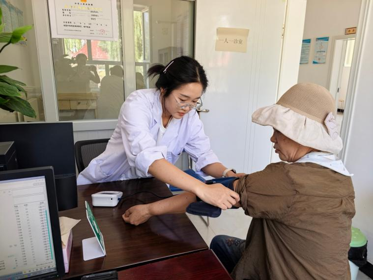 在兴城街道卡拉巴克社区,封恩点的诊室总是透着生活的“烟火气”。这位来自中医专业的大学生村医,一到岗就发现很多居民对常规体检存在抵触心理,觉得身体没毛病就不用查。她从居民的生活习惯入手,看到老人聚在村口闲聊,就搬着小板凳加入,在不经意间引入体检话题:“人的身体就像一辆汽车,开久了总会有些小毛病。如果不定期检查,等出了问题再去修,可能就晚了。”她还根据居民的作息规律,利用中午和傍晚休息时间,邀请大家来医务室或者上门帮助居民检查身体。