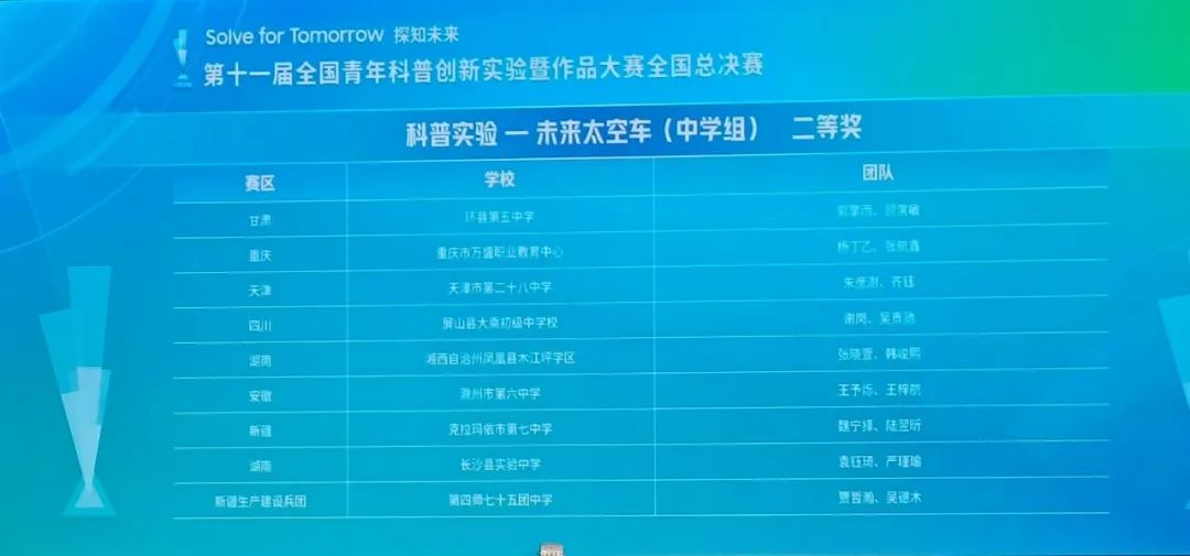 7月31日,全国第十一届青年科普创新实验暨作品大赛在安徽合肥科技馆落幕。四师可克达市两支参赛队伍斩获佳绩。其中,四师第一中学殷思远、巴吾然·叶尔布拉提同学获科普实验·未来太空车(中学组)全国一等奖,七十五团中学贾哲瀚、吴德木同学获该项目二等奖,实现全员获奖。