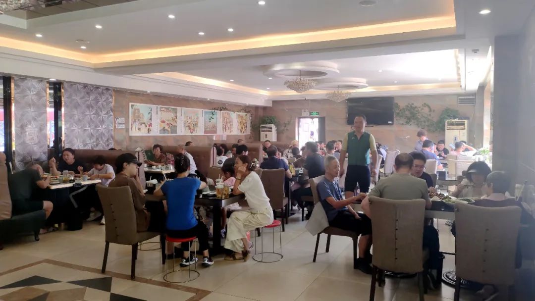 8月1日中午,沙湾市城区沙味王大盘鸡店内,排队等候就餐的食客。汪莹摄影