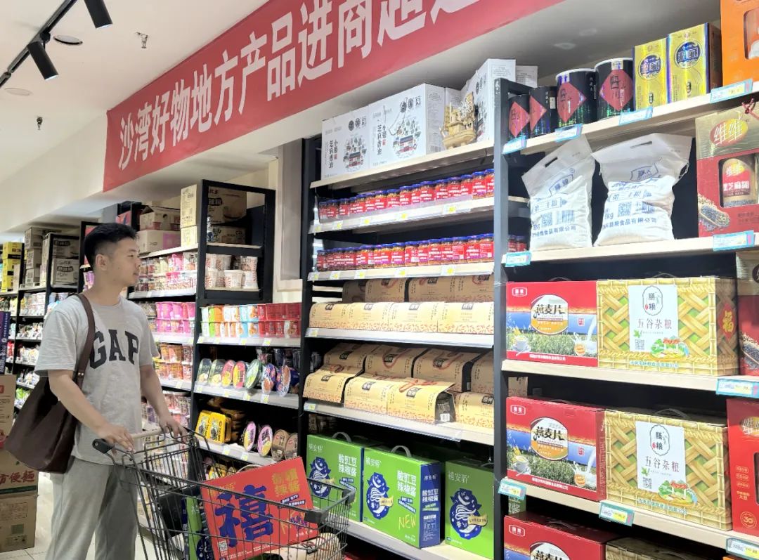 8月1日,城区超市里沙湾特产区购物的游客 阿依加热合摄