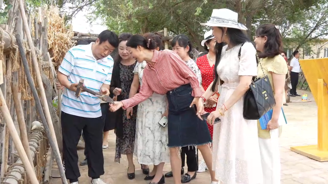 大家一同参观刘亮程童年院落里的各类农具 马文静摄