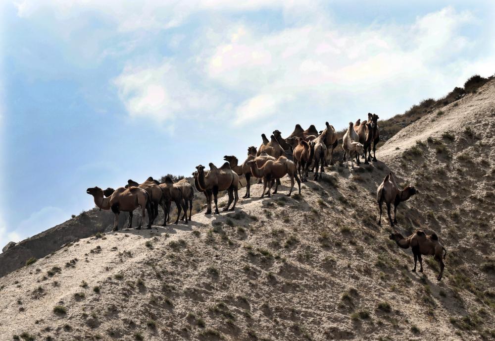 7月29日,一群骆驼在古尔图南山景区悠闲吃草。