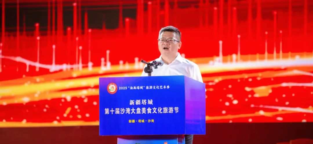 曾梁在致辞中说,新疆塔城沙湾大盘美食文化旅游节不仅是全面展示沙湾开放、包容、和谐的重要窗口,更是以美食为桥梁、文化为纽带,凝聚各方力量、深化多元合作、共促高质量发展的重要平台。作为塔城地区的东大门,“一带一路”核心区建设的交通枢纽和重要节点城市,沙湾市正坚定坚决贯彻新发展理念,始终聚焦社会稳定和长治久安总目标,按照塔城地委对沙湾“一二三产融合快发展”的定位,依托资源优势,因地制宜发展现代煤炭煤化、油气开发、玄武岩拉丝、超算智算、绿氢制绿醇绿氨、生物质航空煤油、棉花全产业链、秸秆综合循环利用、合成生物制造等新质生产力,打造绿色有机生态农牧业、低碳零碳高效循环工业、文旅融合新业态,奋力建设“棉纺之都、美食之都、焰火之都、药材之都”、“三文鱼之乡、辣椒之乡、大盘鸡之乡”,千万吨级煤炭煤化工产业基地、千万千瓦级风光绿电基地、千万人次国际旅游目的地。希望各地企业家朋友们来沙投资兴业,共享时代红利、抢抓政策机遇、深耕发展沃土,沙湾将始终以“金牌店小二”的态度,用沙湾温度、力度来确保沙湾速度、进度,实现企业发展壮大和沙湾发奋图强的双向奔赴。