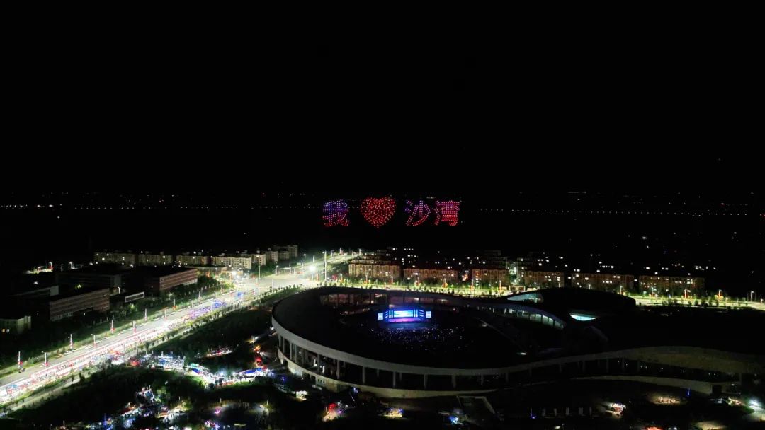 拼出“第十届沙湾大盘美食文化旅游节”的字样,