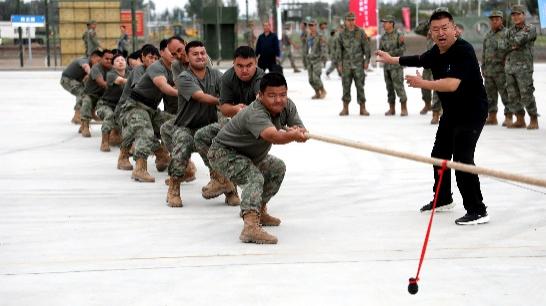 第一师首届“塔河杯”民兵军事技能竞赛暨体育运动会开幕。图为拔河比赛现场。黄月天 摄