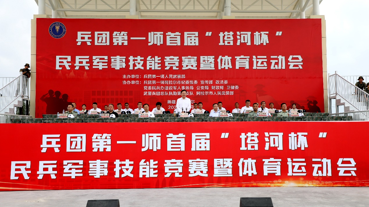 旌旗猎猎,军歌嘹亮。8月5日,新疆兵团第一师首届“塔河杯”民兵军事技能竞赛暨体育运动会开幕。
