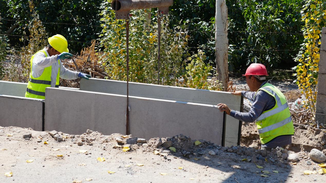 民有所呼,必有所应。为破解这一民生难题,戈壁新村“两委 ”与驻村工作队将灌溉工程列为“头号民生工程”,主动对接温宿县红沙漠生态园林开发有限责任公司。三方通过实地调研,量身定制破解方案。温宿县红沙漠生态园林开发有限责任公司以高标准农田建设项目为依托,投资 372.85 万元建设6条巨型引水渠,通过科学设计渠型、优化落差布局,从根本上破解“用水难、用水乱”问题。