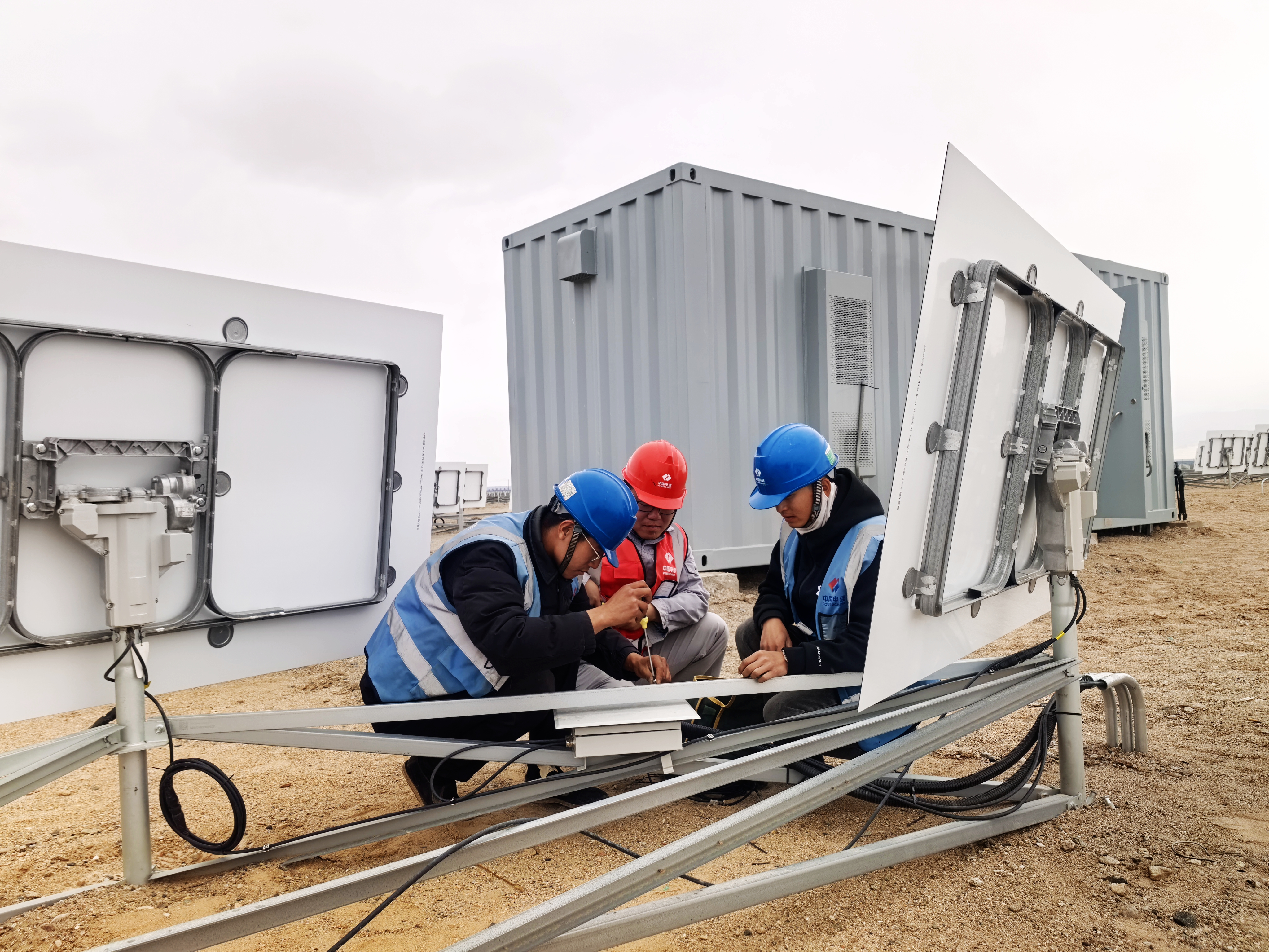 作为光热电站的“神经中枢”,FEC设备承担着多项核心功能。它不仅是镜场及相关设备的电力分配中心和网络通信枢纽,更肩负着控制数万面定日镜实时追踪太阳轨迹、将太阳光精准反射至吸热器的关键任务。值得关注的是,此次成功受电的FEC采用山东电建三公司自主研发的一体化设计,在运输便捷性、安装效率和维护便利性上实现了多重突破。
