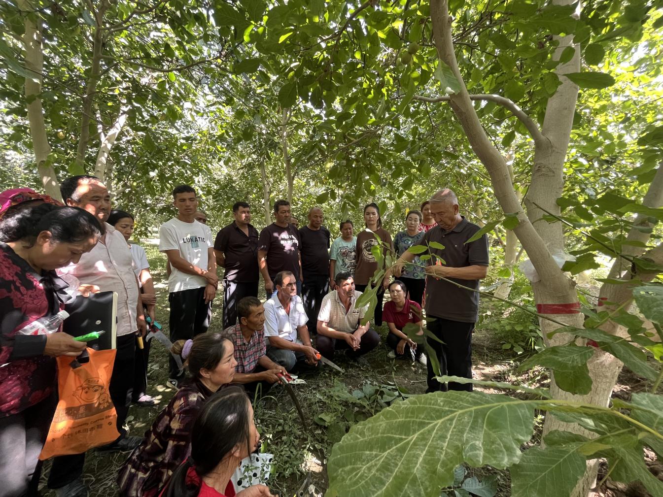 新疆温宿县核桃夏季修剪技术培训现场(杨委辉 摄)