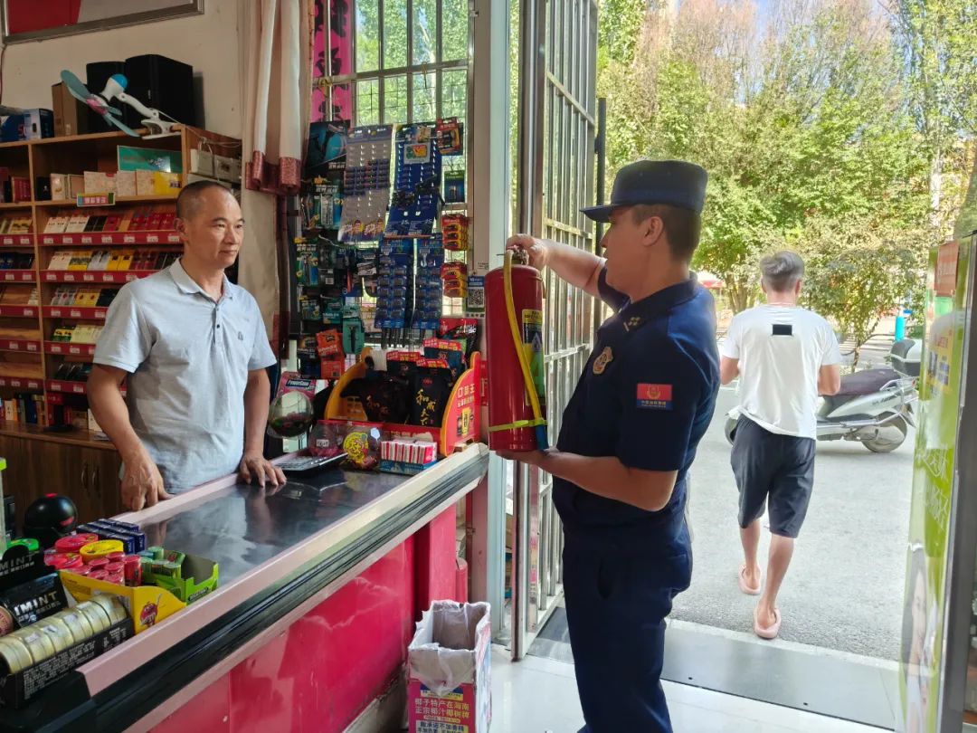 “灭火器要放在店内易于取用的位置,以便在紧急情况下能够快速使用……”防火监督员重点排查了“九小场所”消防设施是否齐全,安全通道是否通畅,用电、用火、用气是否安全,是否存在违法违规施工作业和生产经营,违规设置防盗网和广告牌以及店内违规留人住宿等情况,并对排查出的问题现场指正,督促各场所负责人落实自查自改制度。