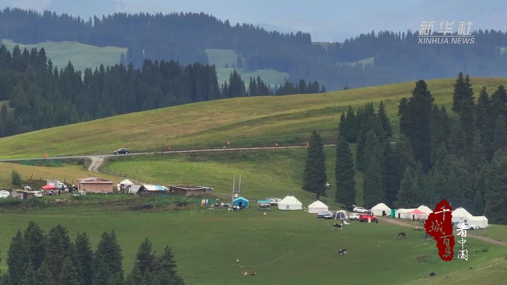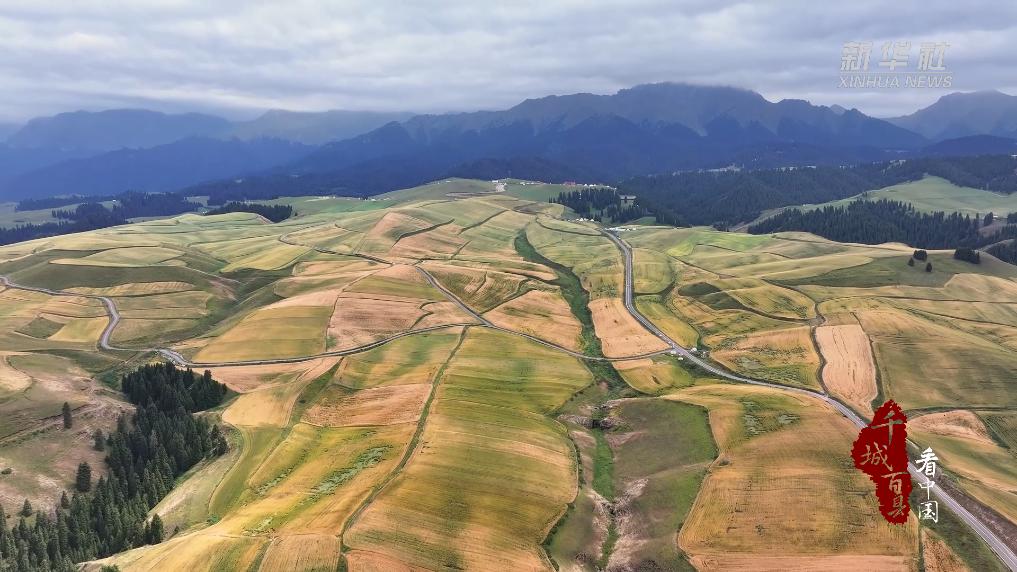 山坳里,毡房如散落的星辰,嵌在草坡上。晚熟的旱作小麦正经历着季节的蜕变,青绿色的浪涛间,已泛起成片的金黄,像阳光不小心打翻了调色盘。