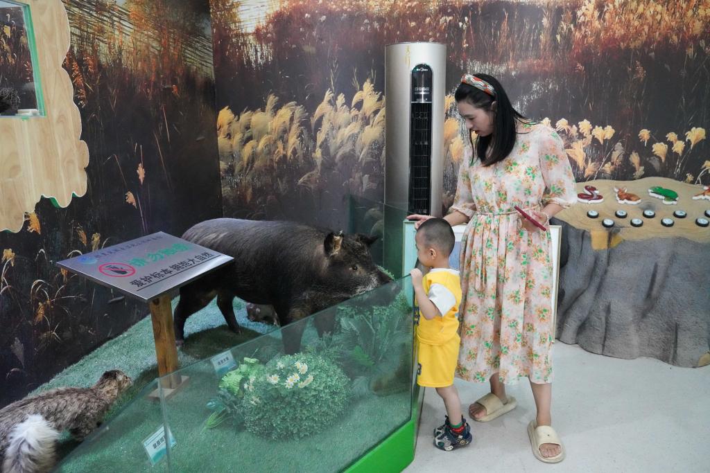 8月6日,游客在拉里昆国家湿地公园科普馆参观。