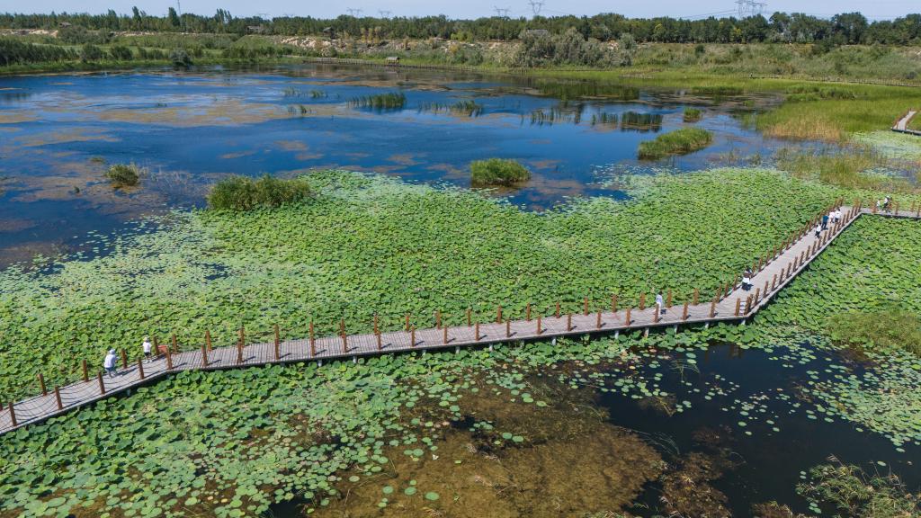 这是8月10日拍摄的玛纳斯国家湿地公园(无人机照片)。