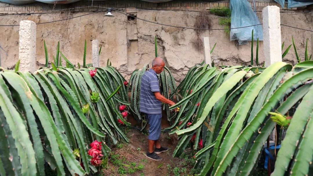 “南果北种”是吴权致富的门道。为了让火龙果适应本地的气候和土壤条件,吴权曾专程前往陕西火龙果基地学习一年,系统掌握了火龙果品种特性与管理要点。回来后,他在种植过程中对温度、光照进行严格把控,最终摸索出适合本地的种植模式,确保了火龙果的品质和产量。