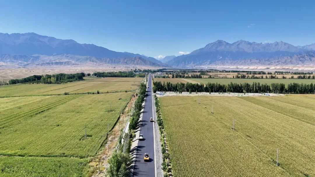 “二级公路对路面强度、平整度等要求更高。我们重点监控沥青摊铺的三个关键指标。第一就是混合料的出场温度,严格控制在140-160度,现场不得低于140度;二是摊铺厚度确保5厘米。压实度达到96%以上;三是连续摊铺,避免冷接缝,尤其是在跟村、社区对接路段出入口,全部采用人机配合精细处理,保障群众出行安全。”新疆安科竣坤工程有限公司专业监理工程师王桂安说。