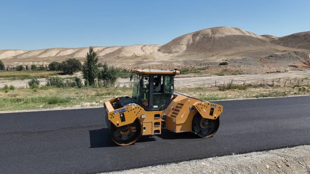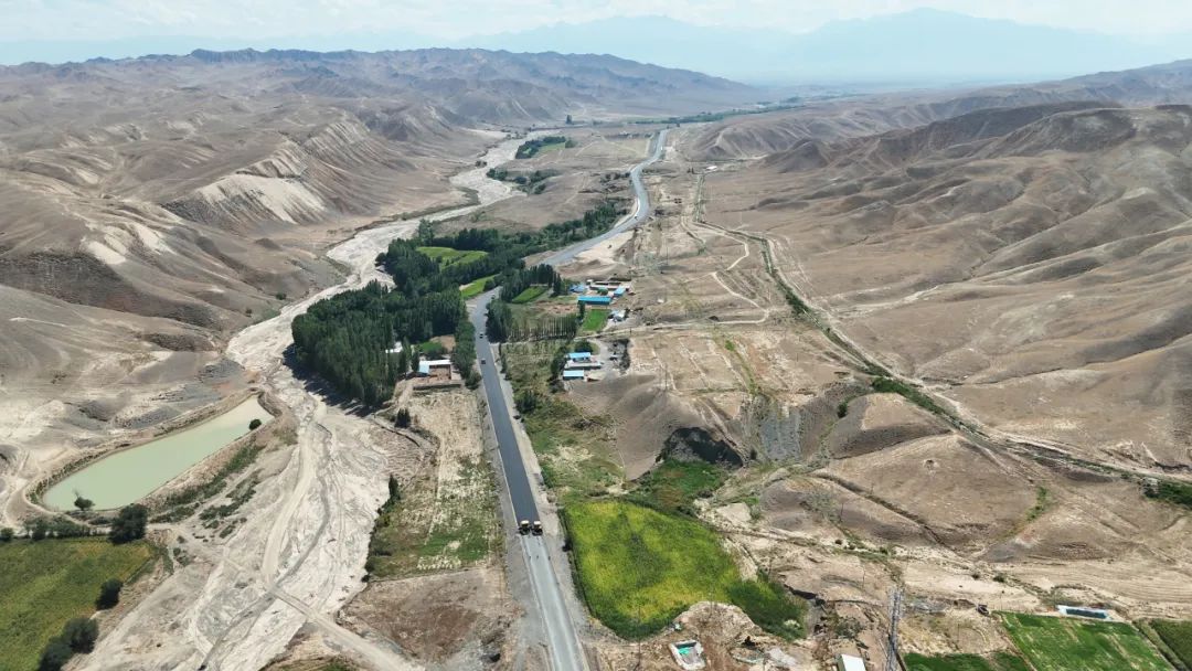 新疆公路建设集团沙温公路二标段项目负责人桑俊说:“我们沙温公路二标段负责西戈壁镇三个泉子社区至S101公路段,全长21.465公里。目前已经完成了10公里的沥青面层的摊铺。针对原有道路狭窄、弯道多的问题,我们同步完成了9处弯道的改直和3段陡坡降坡处理。现在路面宽了将近4米,会车更安全,大型农机具和旅游大巴通行也更为顺畅。”