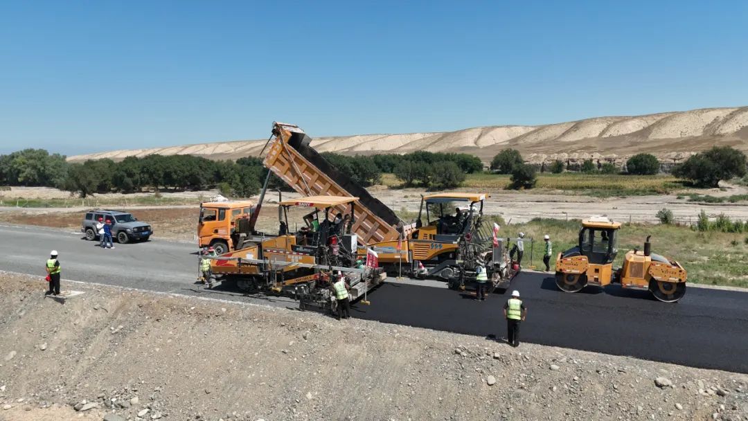连日来,塔城地区沙湾市重点交通建设项目——沙温公路(X814线)改建工程迎来重大进展,全线进入路面铺油阶段。