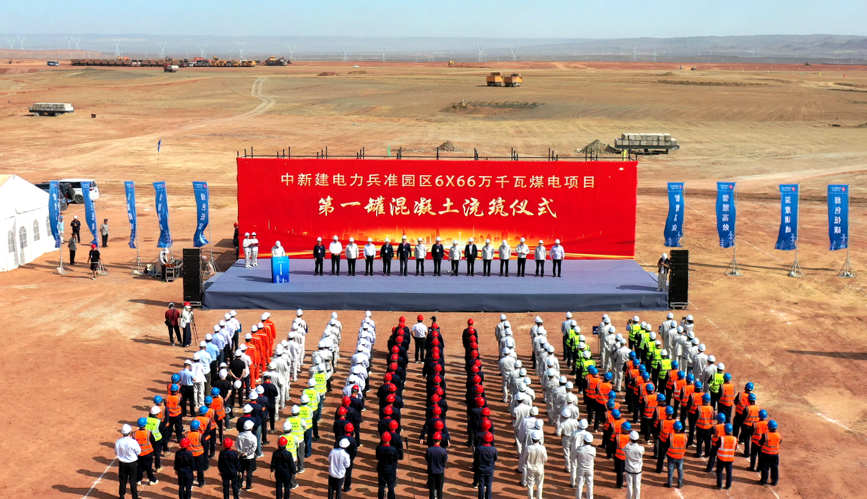 伴随着机械轰鸣声,混凝土泵车长臂缓缓伸展,第一罐混凝土被顺利注入基槽……8月15日上午,中新建电力兵准园区6×66万千瓦煤电项目在兵团准东产业园二期将军庙片区举行第一罐混凝土浇筑仪式。