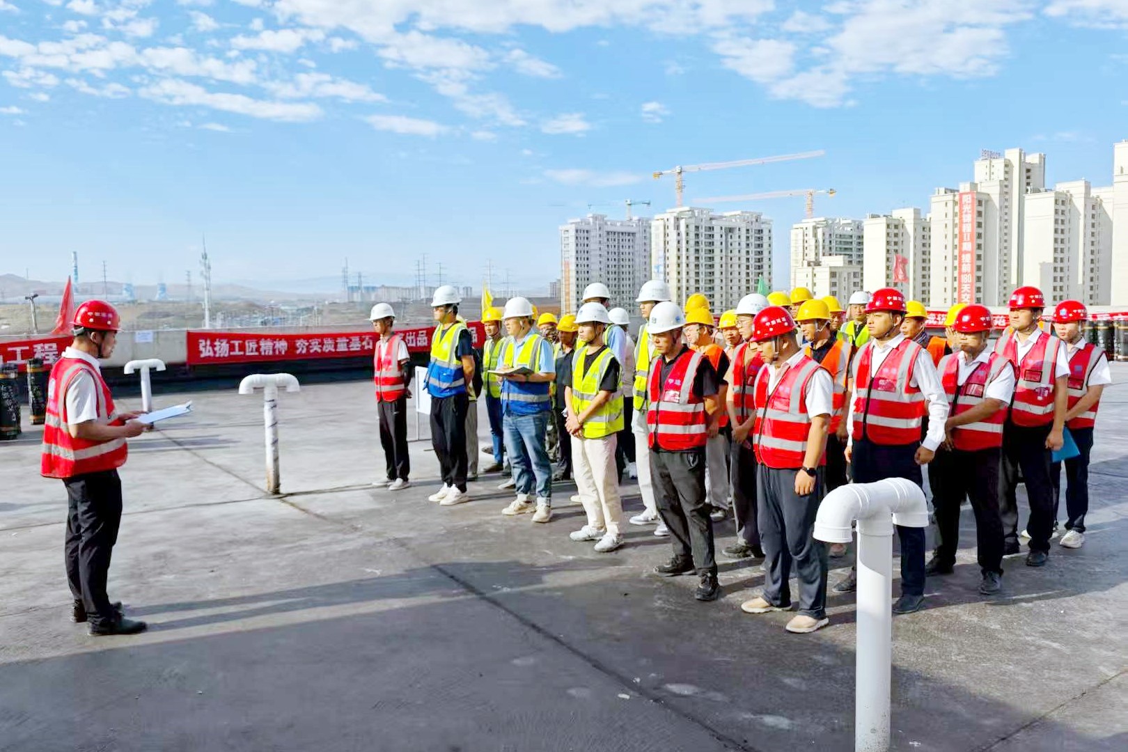 8月11日,中建新疆建工四建在科创大厦项目举办2025年“精益建造”屋面防水施工技能大赛。此次大赛共有6支队伍踊跃参赛。四建党委副书记、总经理吕尚军,党委委员、副总经理、总工程师王军出席活动。