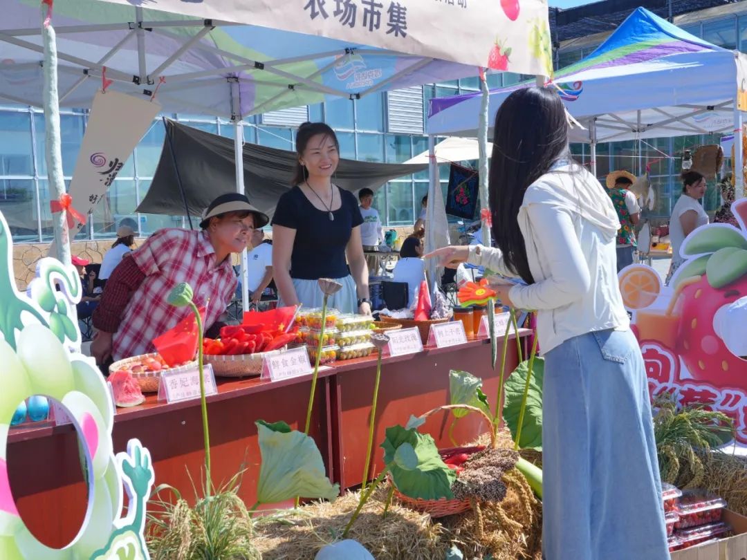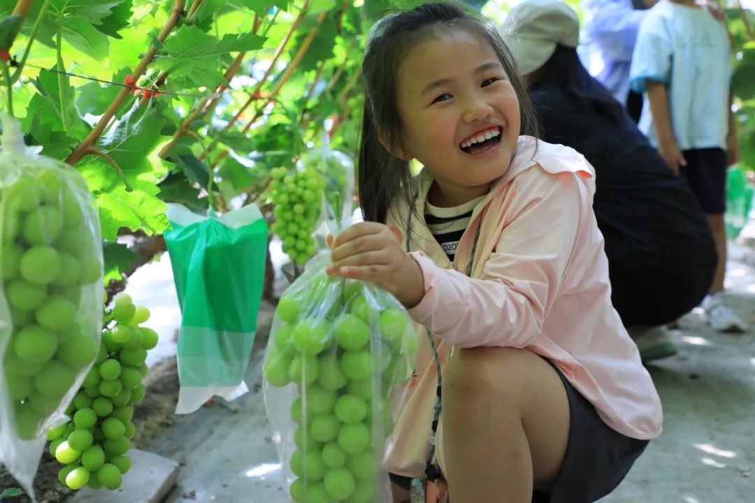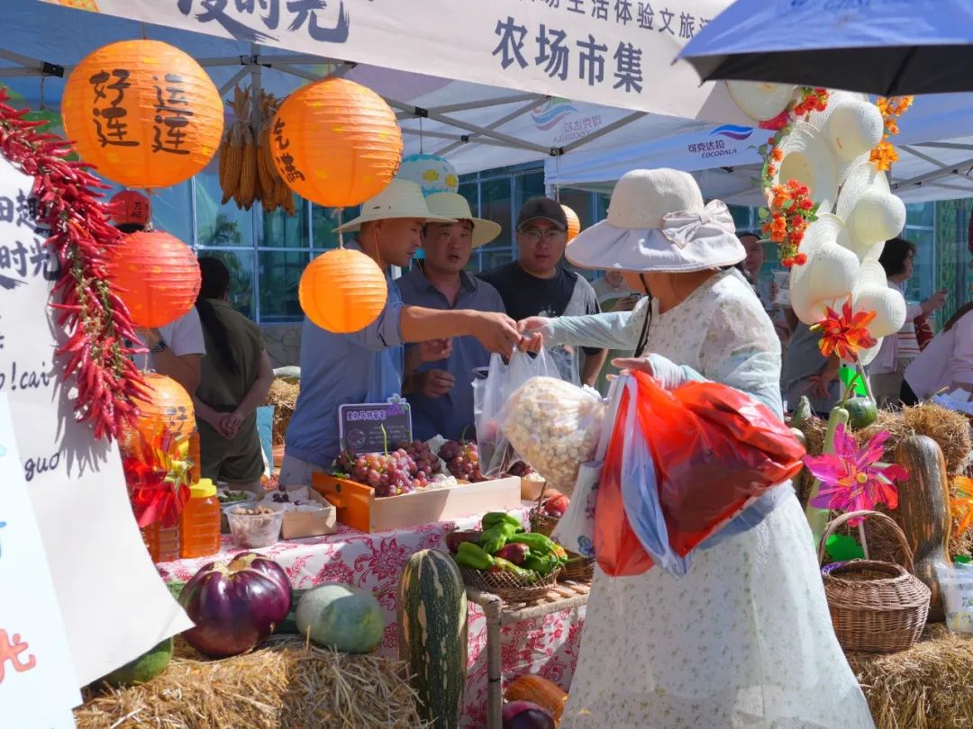 活动现场设复古“粮票”玩法,游客参与采摘、市集消费可领取“粮票”,集齐特定数量“粮票”可兑换文创产品或参与套圈游戏。田园市集40多个摊位前人气旺盛,二连无籽葡萄、十二连爆裂玉米等备受青睐,阳光玫瑰葡萄采摘基地半日接待游客超200人,当日农产品销售额突破7万元。
