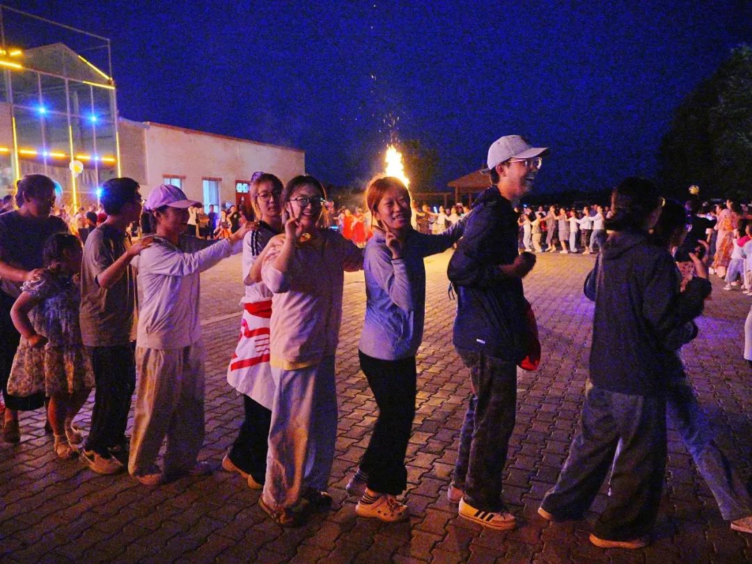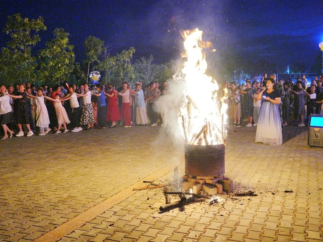 夜幕降临,民谣音乐会掀起高潮,《我们的时光》《同桌的你》等引发大合唱。篝火晚会上,各族群众载歌载舞,促进了兵地各民族文化交流。