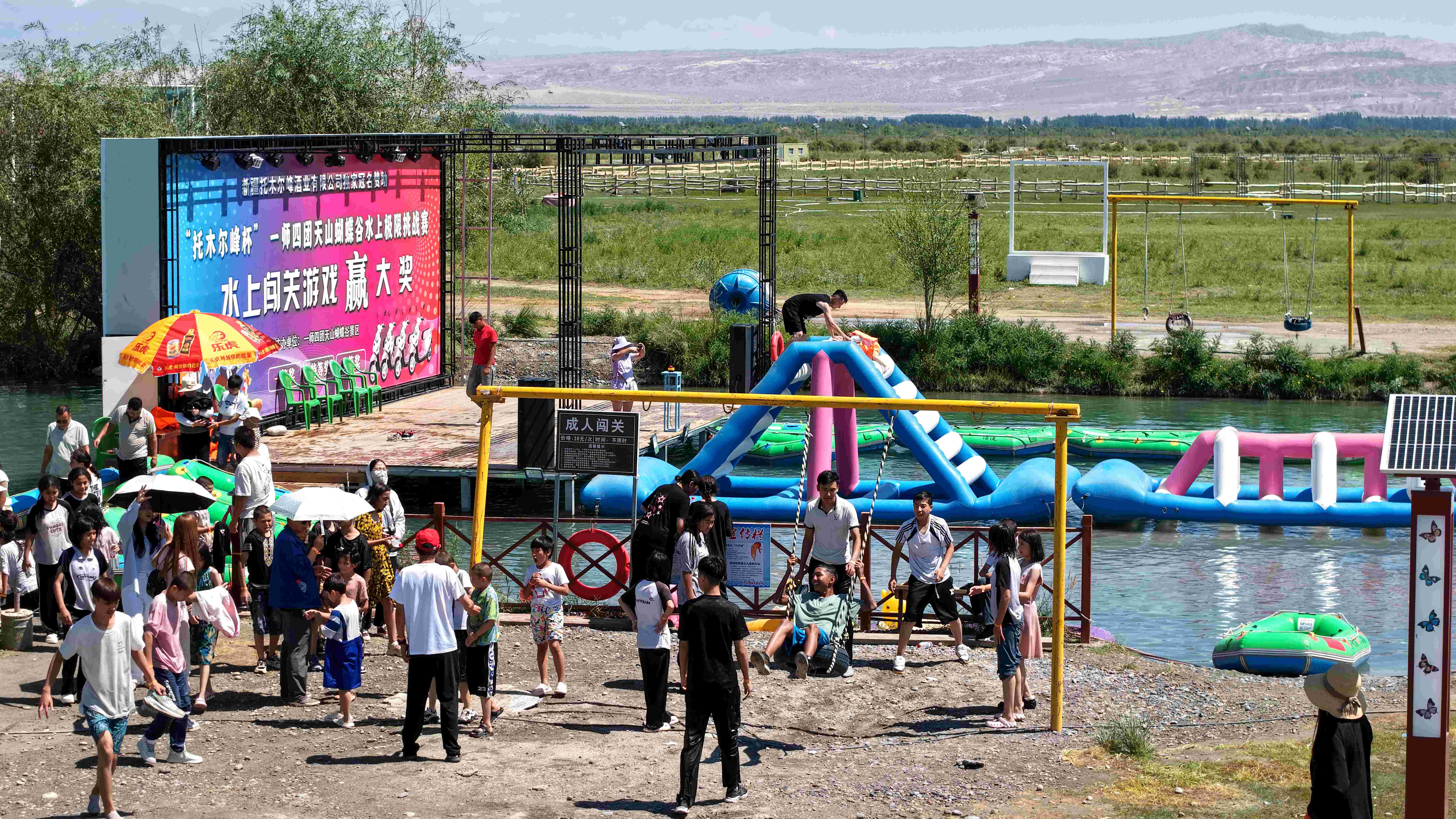 在发展过程中,天山蝴蝶谷景区立足特色,巧做文章。区域内的万亩草原、万亩红柳滩、万亩沙棘林与纵横交错的水系相得益彰,使水上业态成为景区的一大特色。目前,景区已开发漂流、水上闯关、天然游泳、垂钓等多个水上项目,吸引了众多游客前来打卡。