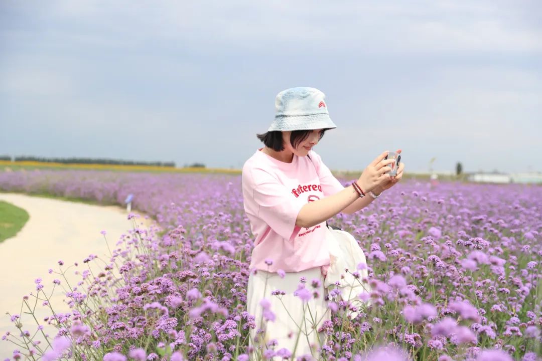 大皖新闻记者在可克达拉薰衣草文化产业园内取景拍照。