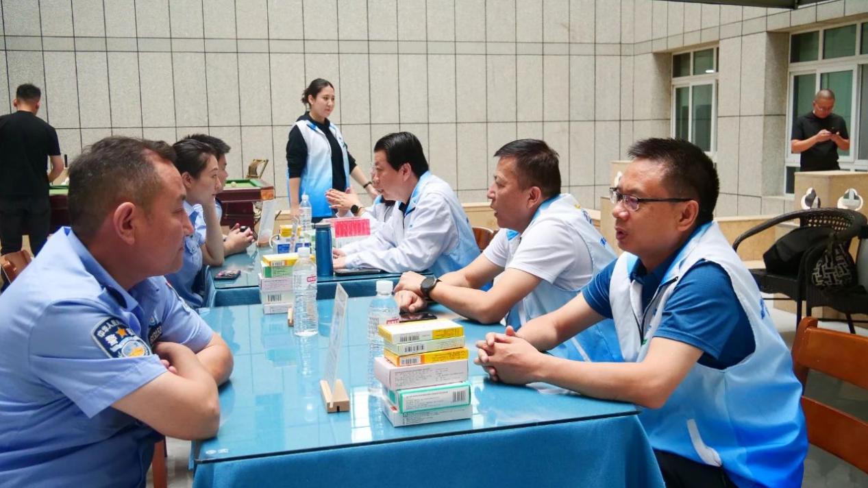 (医生为民警进行健康指导)