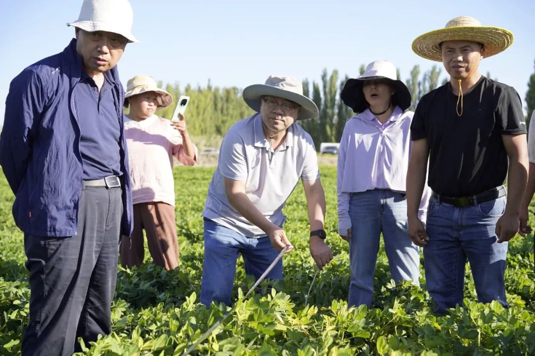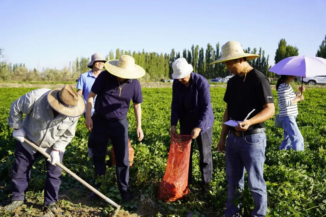 8月25日,四师可克达拉市农业农村局邀请河南省作物分子育种研究院张新友院士一行,赴六十四团十六连100亩花生示范田,对高油酸花生豫花93号品种开展联合实地测产。经现场实测,该示范田平均亩产干果达661.26公斤,创下伊犁河谷花生单产新高。