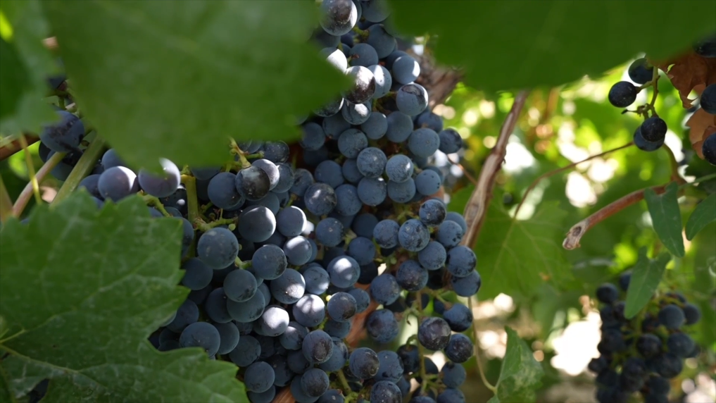 在和硕县的葡萄种植基地里,一串串颗粒饱满、气味芬芳的葡萄挂满枝头。种植户们正趁着晴好天气穿梭在田间,采摘和运输新鲜成熟的葡萄。