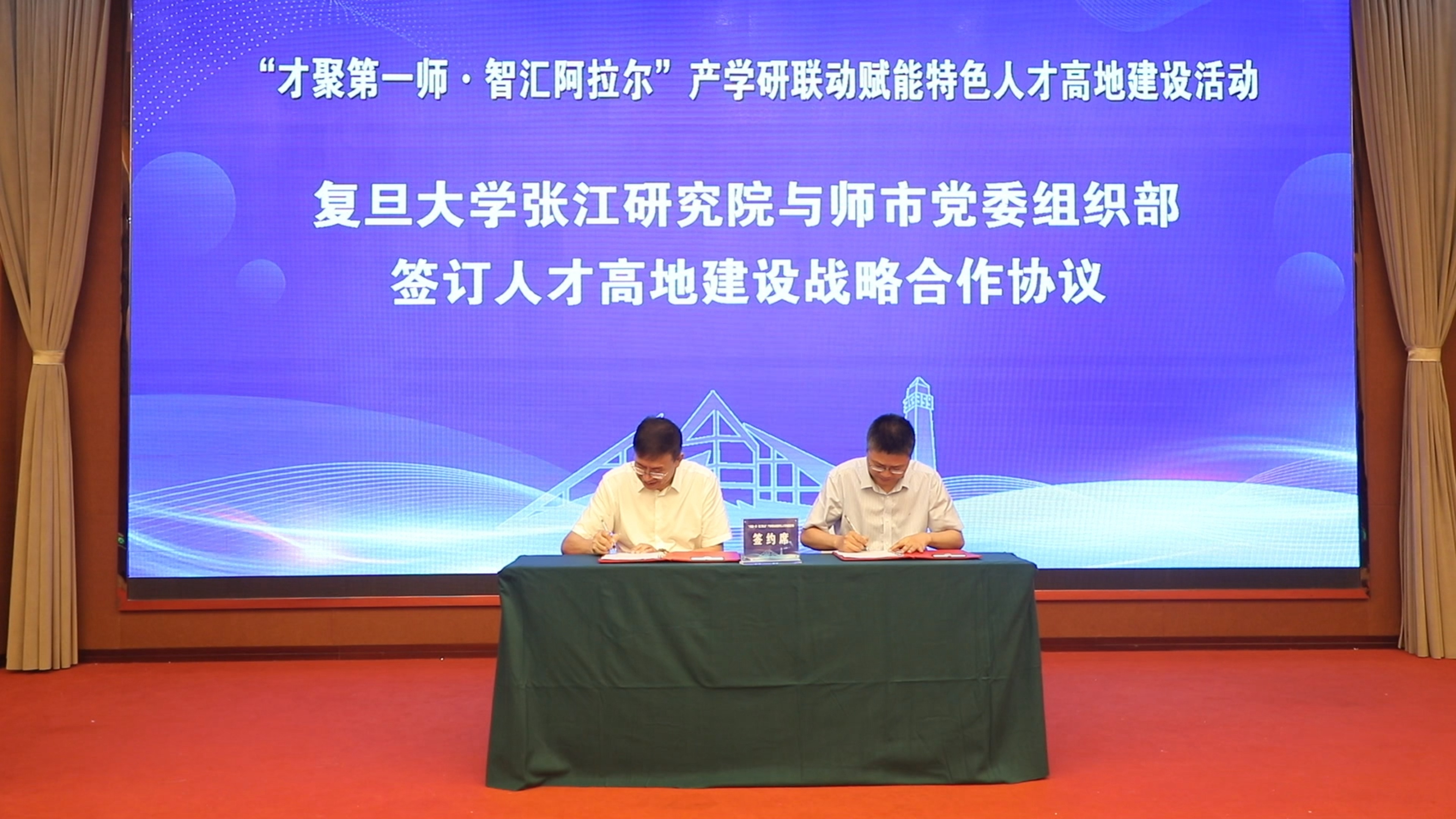 开幕式上,第一师阿拉尔市党委组织部与复旦大学张江研究院、新疆西北兴业城投集团有限公司与山东建筑大学分别签订了战略合作协议。新疆阿拉尔大学城集团有限公司与山东大学管理学院、阿拉尔经济技术开发区与山东大学学生就业创业指导中心分别就“产教融合(南疆)中心”“山东大学学生就业创业实践基地”进行了揭牌。