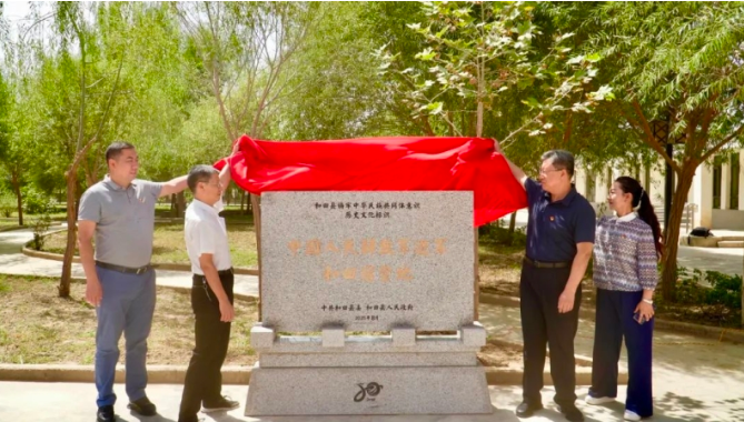 “中国人民解放军进军和田宿营地”揭牌