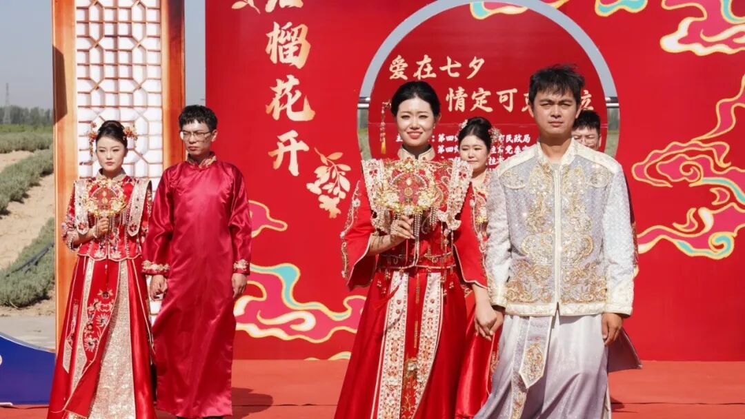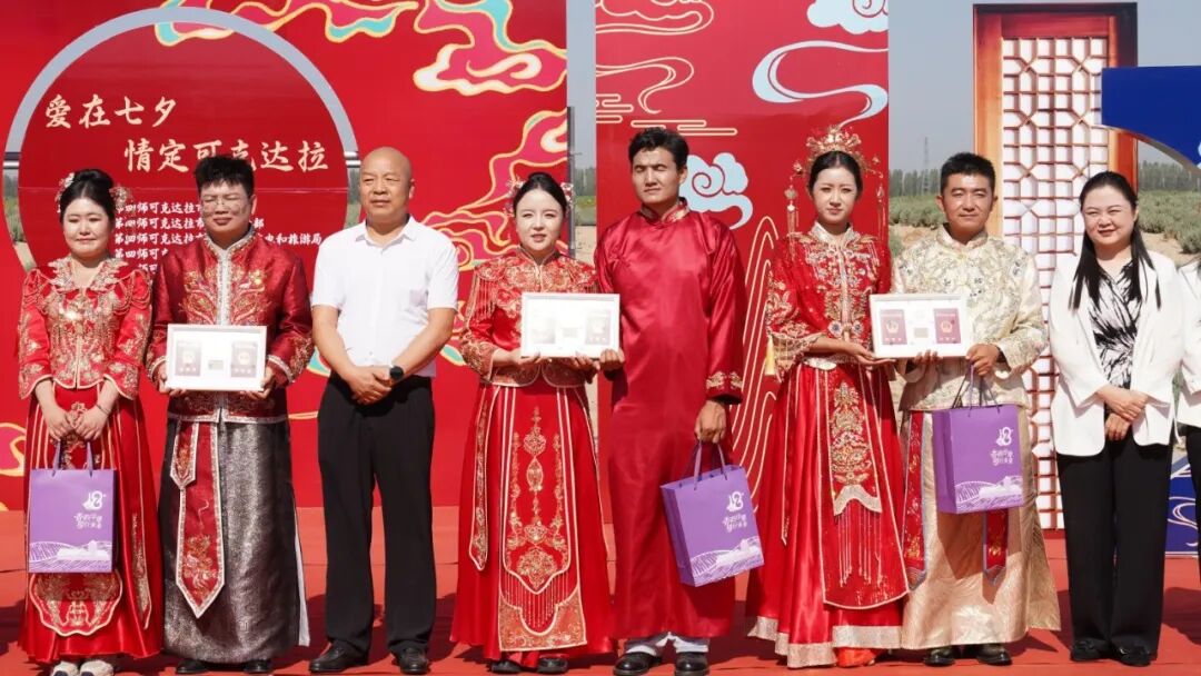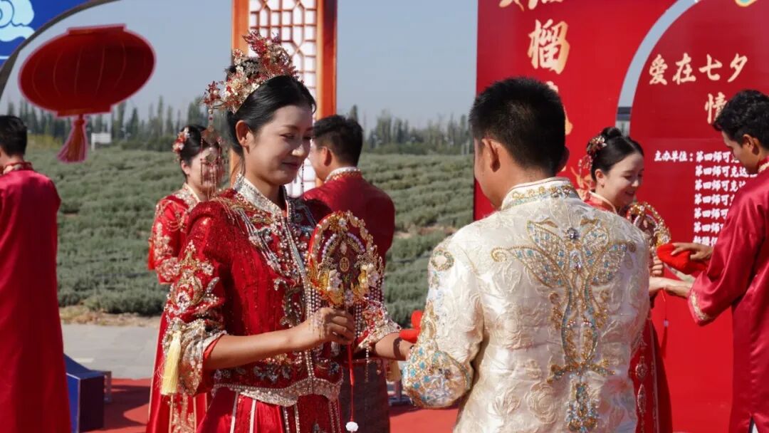 8月29日,正值七夕佳节,由四师可克达拉市民政局联合相关部门主办的“爱在七夕,情定可克达拉”集体婚礼,在伊帕尔汗薰衣草文化产业园浪漫启幕。