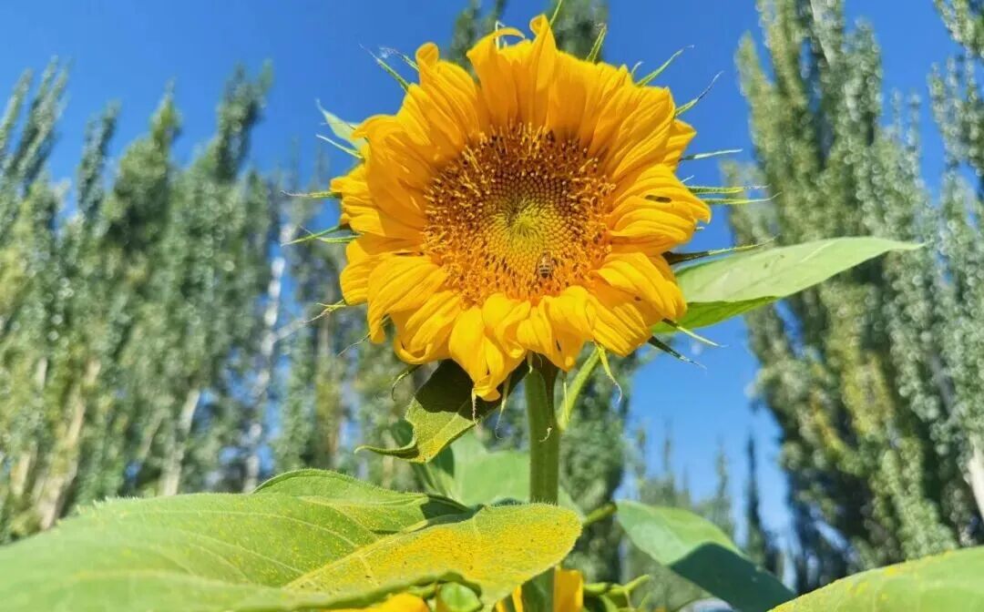 金秋八月,阳光正好,新和县尤鲁都斯巴格镇1700余亩向日葵迎来盛产期,绘出一幅秋日丰收的美丽画卷。