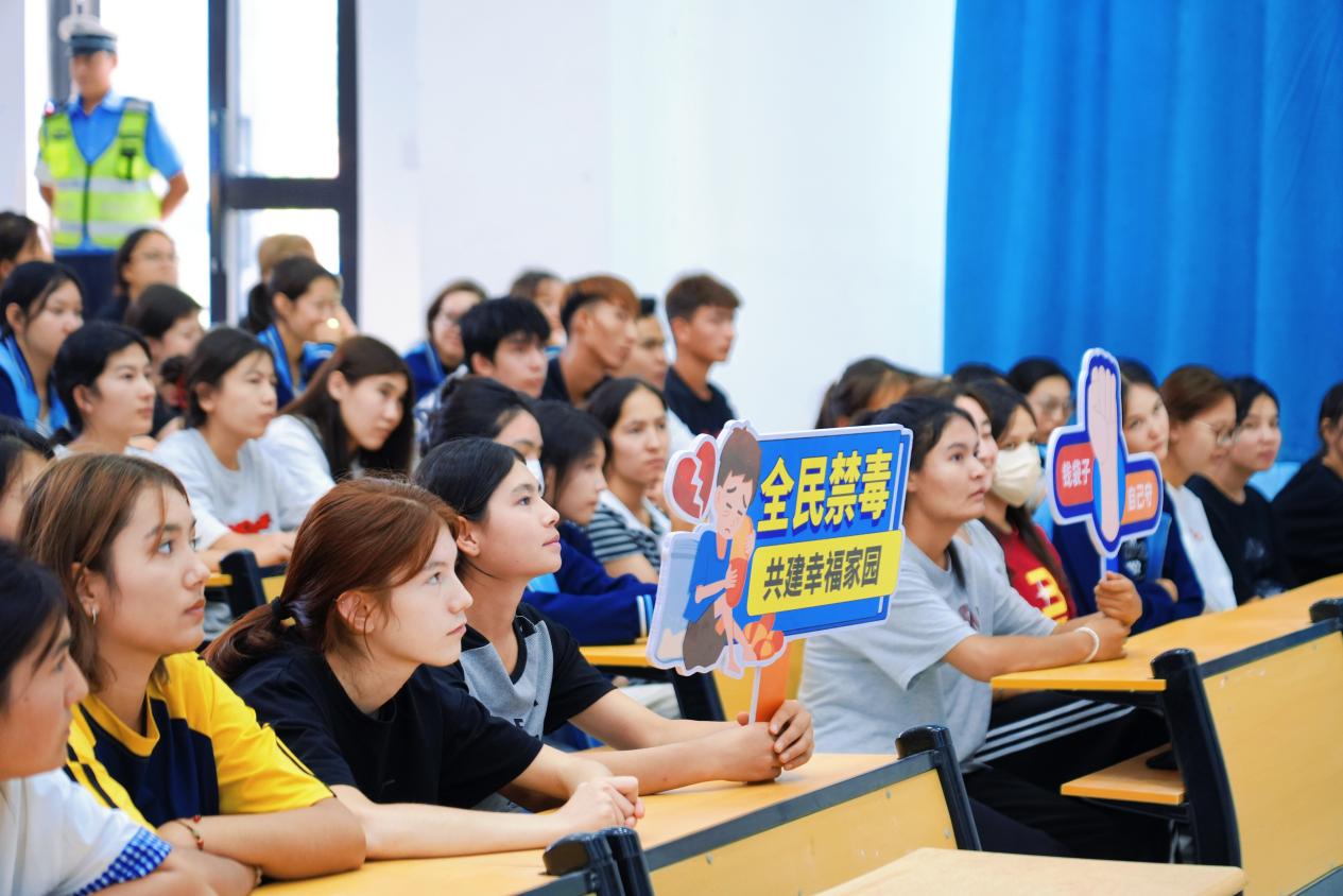 温宿县公安局组织民警走进阿克苏职业技术学院,为2025级新生带来了一堂别开生面、干货满满的“开学第一课”普法宣传讲座(陈小双 摄)