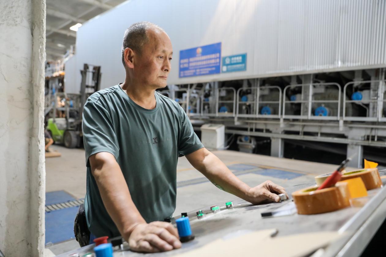 纱管纸生产线主要是利用回收的箱板纸,经过筛选、净化、疏解后生产出纱管原纸,这样既能变废为宝,又增加了经济收益,充分体现了公司环保、节能、科技的绿色发展理念。“我们将周边地区的废纸作为原材料,每年可处理废纸12万吨,实现日处理污水1500吨,同时可以对产生的固废和废水进行回收再利用。”杨伟博说。