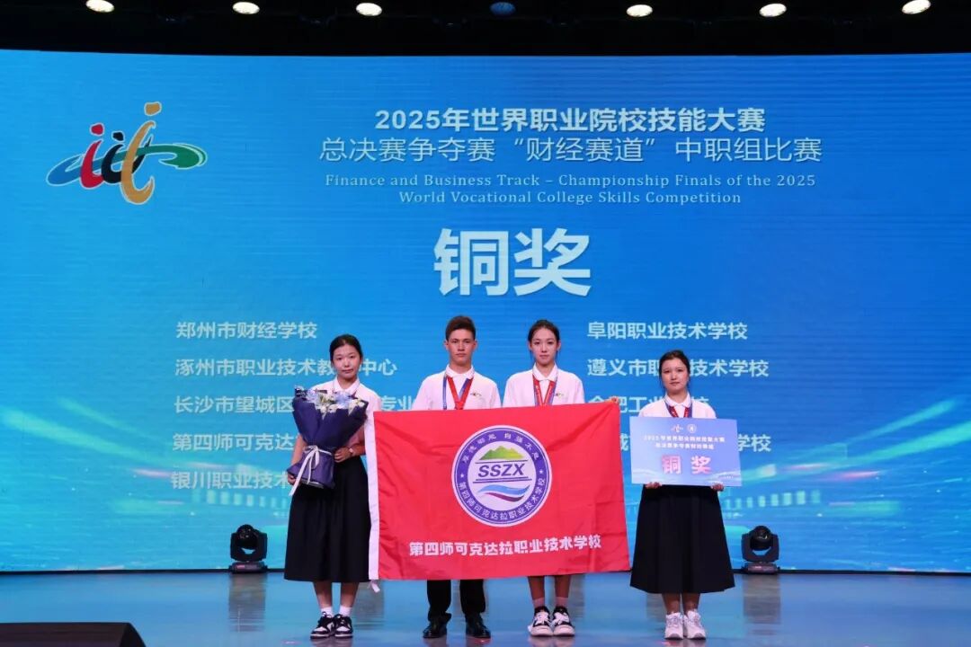 9月1日,2025年世界职业院校技能大赛总决赛财经赛道(中职组)在山西太原落下帷幕。由第四师可克达拉职业技术学校党委副书记、校长尹月梅、指导教师郑畅、学生呵瓦古丽·阿卜杜吾普尔、孜力亚尔·亚生江、肖婷、娄雅轩组成的参赛团队荣获铜奖,实现了该校在国赛中的“零突破”。