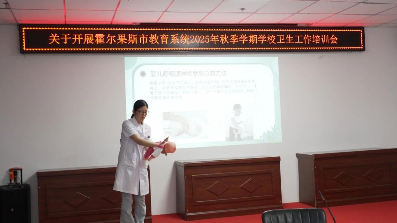 9月8日,霍尔果斯市教育局与市人民医院联合举办2025年秋季学期学校卫生工作培训会,面向全市各中小学及幼儿园的校医队伍进行系统化、专业化的急救知识与技能培训,全面提升校园应急救护能力,筑牢学生健康安全防线。