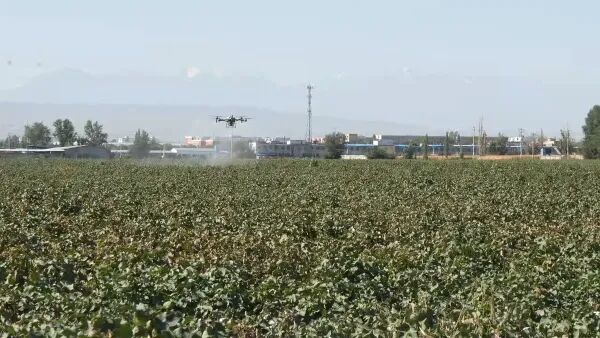 在沙湾市金沟河镇宋圣宫村,连片的棉田已泛起白色的“浪花”,一派丰收在望的景象。植保无人机在棉田上空盘旋穿梭,将细密的雾状药剂均匀地覆盖在棉株上。