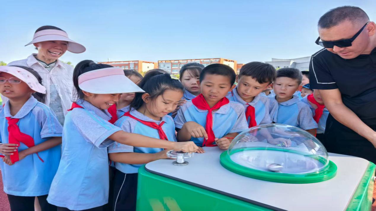 最后,“流动科普器材探秘之旅”为孩子们开启了一场近距离的观摩盛宴,16台便携式科普设备一字排开,在科普志愿者和老师的引导下,孩子们现场聆听科普器材的科学原理,了解背后的科学知识和生活应用,并动手参与简易实验,体验智趣游戏,在“看、问、做、玩”中轻松理解抽象的科学知识,切实体验到“触摸科技,玩转科学”的乐趣。