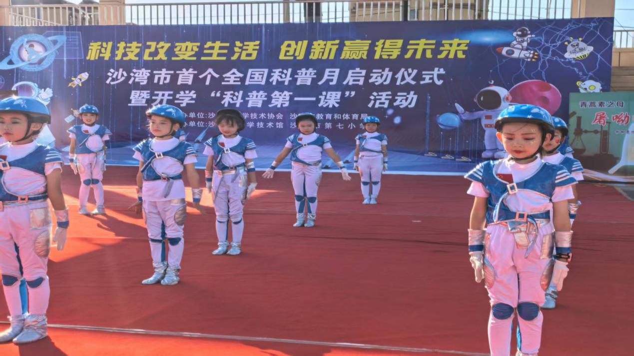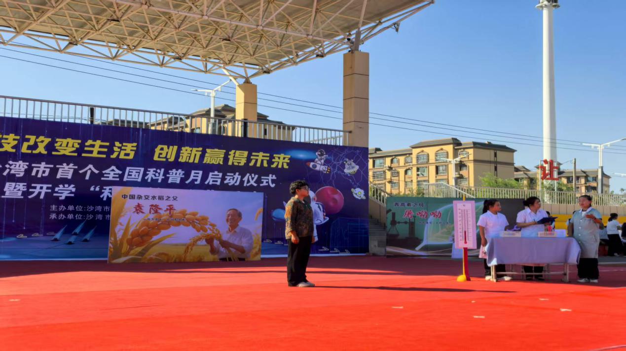 金秋九月,清风送爽,新学期的钟声刚刚敲响,科普的种子便在沙湾市第七小学悄然播撒。2025年9月5日,沙湾市首个全国科普月启动仪式暨开学“科普第一课”在此隆重举行,全市科学素质责任单位代表、科技工作者、科普志愿者、各学(协会)代表及1200余名师生齐聚一堂,以“科技改变生活创新赢得未来”为主题,共赴一场兼具知识性、趣味性与互动性的科普盛宴。