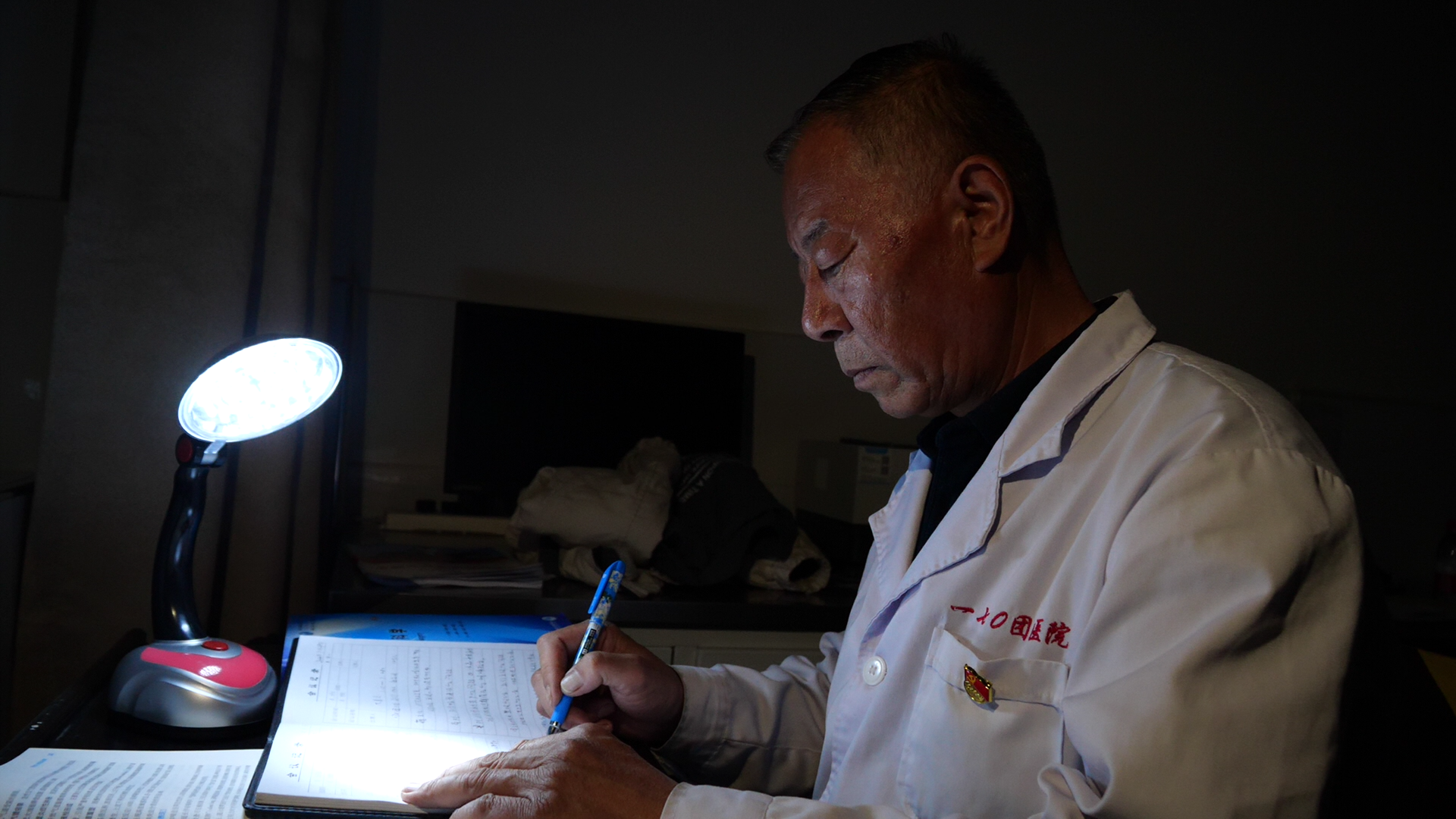 白天,他跟着职工群众一起放牧,倾听、模仿每一个发音;晚上,回到卫生室,借着昏黄摇曳的油灯,在笔记本上密密麻麻地记录着白天学到的词句,一遍又一遍反复诵读练习。