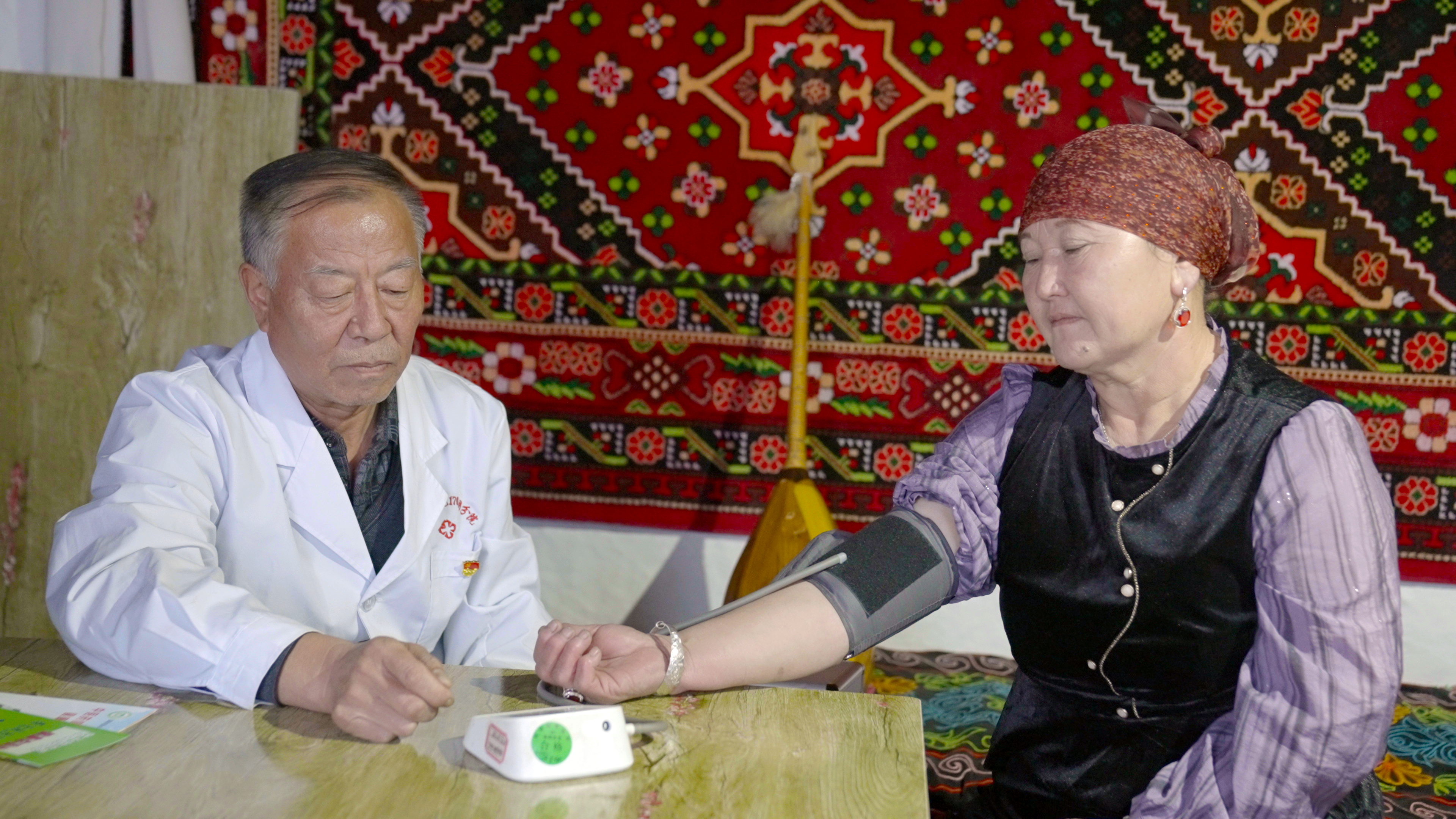 一张旧桌子、几把椅子、一个简单的药架,这个“家庭卫生室”成为牧区百姓生命的庇护所。看病问诊、抓药配药、打针治疗,所有工作他一人承担。无论白天黑夜,只要患者有需求,他便随叫随到,半夜出诊、五更出门,早已成为工作的常态。有时候,一个晚上要出诊好几次,彻夜难眠;有时候,刚端起饭碗,就被紧急叫走。这间50多平方米“家庭卫生室”曾1个月接待患者800多人次。